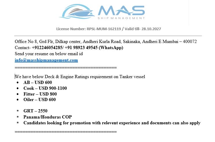 | Rank | 4th Engineer |